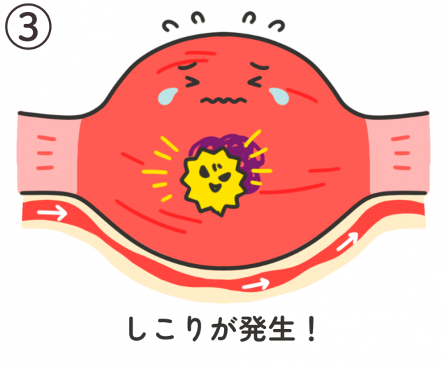 | ③筋肉や筋膜が酸欠状態になり 硬いしこりが発生! |