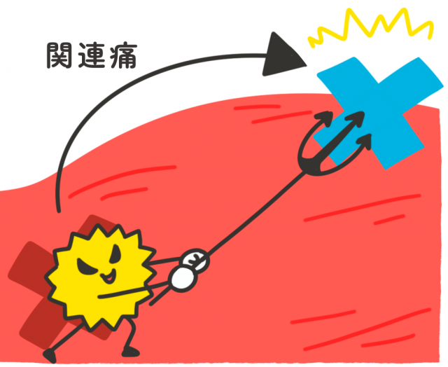【トリガーポイントと離れた場所に痛みやしびれをとばす(=関連痛)】